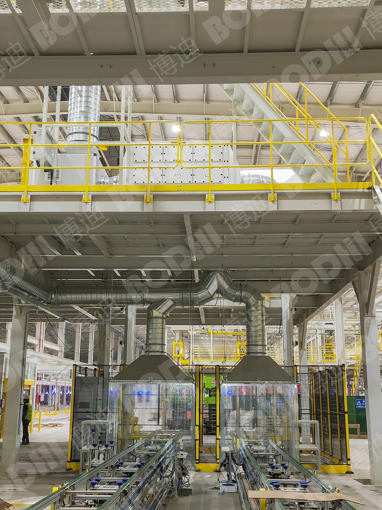 通过本次风挡自动涂胶安装项目的抽排风设备改造,车企不仅成功解决了涂胶过程中产生的VOCs废气排放问题,还实现了高效的废气净化和环境保护。博迪不仅能为您量身定制废气治理解决方案,还能依托博迪在废气处理技术上的深厚积累,推动企业环保合规与绿色转型。